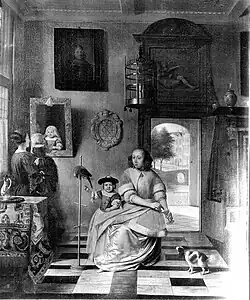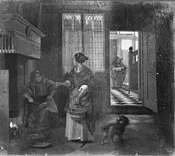 A mother with two children and a maid with a pail by a fireplace | 1675–1680 | 83.8 × 81.6 cm | private collection | unknown | |