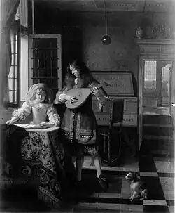 | Interior with a Young Couple and a Dog | 1662–1665 | 54.8 × 62.8 cm | 14.40.613 | Metropolitan Museum of Art | New York City | |