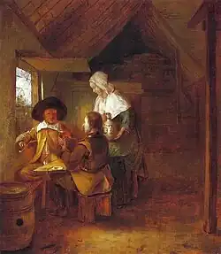 Two soldiers drinking with a serving woman | 1650–1655 | 52 × 46 cm | private collection | unknown | |