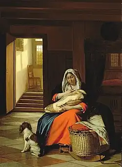 Woman nursing by a cradle with a dog at her feet | 1674–1676 | 79.7 × 59.7 cm | 89.39 | Detroit Institute of Arts | Detroit |
