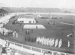 While official report was actually the summary of the sporting events held at the 1900 Exposition Universelle and so can not be considered as reliable source,[7] the IOC states that 24 nations participated in the 1900 Summer Olympics in Paris,[8] but additional sources list up to 28 nations, with Haiti, Iran, Luxembourg, and Peru being the additions.[9][10] The 1904 Games, held in St. Louis were the first Olympics outside of Europe, with very few top-class athletes from outside the North America taking part, and saw the participation of 12 to 15 nations, including a not yet existing Union of South Africa represented by a Boer team of extras from the Louisiana Purchase Exposition.[11][12] Although the Intercalated Games of 1906 are no longer considered official Games of the Olympiad by the IOC, they helped restore the Olympic movement. Participation at subsequent Games grew steadily, with 22 nations in London for 1908[13] and 28 nations in Stockholm for the 1912 Games.[14] At these two Games (only), one of the delegations was actually a combined team of athletes from Australia and New Zealand, designated Australasia. The Games of 1916, planned for Berlin, were cancelled due to World War I.