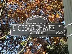 Cesar Chavez Street sign in Austin, TX