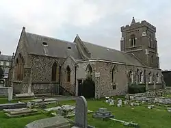 Anglican | II* | The ancient parish church of Rottingdean was absorbed into Brighton in 1928.[63] The Normans rebuilt a Saxon church in the 13th century, and much of this structure survives—despite damage caused by a French raid in 1377.[64] The cruciform, flint-built church has a large churchyard.[65] Rudyard Kipling, his uncle Sir Edward Burne-Jones and Prime Minister Stanley Baldwin all had links with the church.[66] |