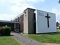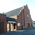 United Reformed Church | – | This church was built in 1963, but the history of the cause can be traced back 300 years from that date. The building, with a curved cantilevered upper storey projecting far beyond the ground floor, was designed by the firm of Charity, Thirtle and Duke; it replaced a chapel of 1904 on another site (registered for marriages in February 1905) which had been damaged by fire in 1961. | [14][15] [25][70] [71][72] | |