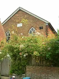 Methodist | – | Also known as Springfield Road Methodist Church, this superseded a small chapel at Haddocks Hill (1873–1920). The land was bought to prevent a pub being built on the site. Henry Harper designed the church in 1906, and services commenced in March 1907. Its marriage registration dates from January 1911. It is Perpendicular Gothic Revival in style, of red-brick with decorative pinnacles and gables. | [44][121] [122][123] [124][125] [126][127] | |