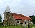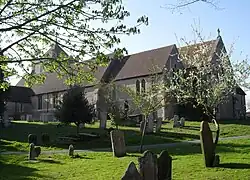 Sussex—the Kingdom of the South Saxons—was one of the last parts of England to be Christianised. It was isolated from other parts of the country because of the thick forest that covered it. When St Wilfrid and his missionaries brought Christianity to the area in the 7th century, they arrived by sea.[3] The new religion quickly spread; the longest established churches in the present Rother area are apparently St Peter's Church in Bexhill's old town and All Saints Church at Icklesham, both founded in 772 (but no 8th-century fabric remains at either location).[4][5] Many more churches were built in the Saxon era, but most were either superseded by larger Norman buildings between the 11th and 13th centuries—as at Sedlescombe[6] and Whatlington[5]—or substantially added to, as at Icklesham.[7] Many places also gained their first church during this period, and the size and opulence of some (such as Ticehurst[8] and Salehurst)[9] reflect the area's iron-industry wealth at the time.[8] Nevertheless, some parishes were initially very large: for example, both Bodiam and Etchingham were served from Salehurst parish church until their own churches were built in the 14th century.[10][11]