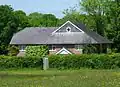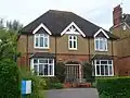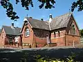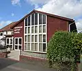 Protestant Nonconformity has a long history in the district. Baptist worship has taken place at Dormansland since 1792, and the church (which occupies a building dating from 1817)[20] helped to found several others in the area—such as those at Lingfield and Smallfield (both now closed).[21] The isolated Pains Hill Chapel near Limpsfield has existed since 1823,[22] and since World War II Evangelical congregations have developed in Hurst Green[23] and Smallfield.[24] Meanwhile, the village of Newchapel was chosen as the site of England's first Latter-day Saints' Temple, named the London England Temple.[25] The main towns have places of worship serving a wider variety of denominations: the Congregational Federation can be found in Caterham,[26] Oxted has an Open Brethren Gospel Hall,[27] and a Christian Science church,[28] and both places support Roman Catholic and United Reformed congregations. Oxted's Catholic and United Reformed churches are both Grade II-listed: the former, a "quite exceptional building" of the early 20th century, combines the Perpendicular Gothic Revival and Arts and Crafts styles,[29] while the Church of the Peace of God (the United Reformed church) is a 1930s interpretation of the Byzantine style.[30] The Methodist Statistical Returns published in 1947[note 1] recorded chapels of Wesleyan Methodist origin in Bletchingley, Caterham (the "Guards' Church", used by the public and by soldiers at the nearby barracks), Caterham Valley, Lingfield and Warlingham.[32] Caterham's chapel, registered in 1904,[33] is still in use; Warlingham's was replaced by a new building on the same site in 1961;[34] Lingfield's is now in secular use; and the other two do not survive. A new Methodist church building was also registered in 1961 in Hurst Green,[35] although this closed in 2021.[36] Elsewhere, the Plymouth Brethren Christian Church have a meeting room in the former goods yard next to Upper Warlingham railway station in Whyteleafe[37] and another on the borders of Whyteleafe and Caterham.[38]
