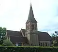 Anglican churches with 12th-century or older origins include those at Bletchingley,[11] Burstow,[12] Chelsham,[13] Horne[14] and Nutfield;[14] many have been rebuilt and restored to some extent, but the survival of ancient fabric is common. Caterham's church of St Lawrence, dating from about 1100 and featuring a "truly remarkable" original window, has been supplemented by two 19th-century churches but remains open for services.[15] Other Anglican churches were built in the Victorian era and the 20th century as villages and suburbs expanded: examples include St Luke's at Whyteleafe,[15] the second church (St Christopher's) at Warlingham,[16] and the centrally located and much larger St Paul's at Woldingham (1933)—superseding the isolated single-room St Agatha's Church, called "Surrey's meanest chapel" by Pevsner.[17] Elsewhere, a former school was converted into a church in South Godstone,[18] and at Smallfield a church hall doubles as an Anglican chapel of ease.[19]
