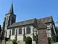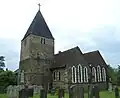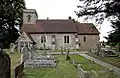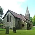 Anglican II The walls of this mostly 12th-century church are of local stone with some brickwork, and a tall broach spire rises from a weatherboarded turret at one end of the nave. The windows are various Early English and Decorated Gothic, some incorporating older material. Minimal restoration work has been undertaken (although some was needed after a fire in 1947), and the Victoria County History of Surrey calls it "one of the most interesting churches in the district". [107][108]