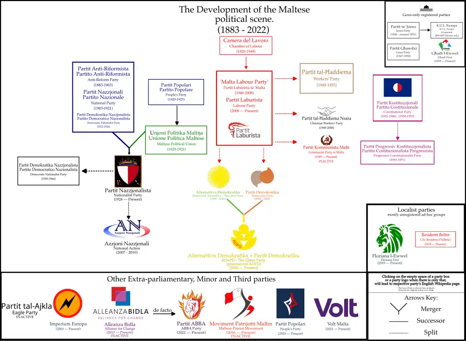 9. ^ a b Sansone, Kurt. "From Floriana l-Ewwel to ABBA, Malta has 12 registered political parties". MaltaToday. Retrieved 26 February 2022.