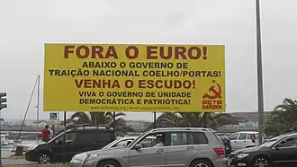 18. ^ "Portuguese socialists defend post-EU bailout austerity". EUobserver. 6 May 2019. The centre-right CDS-PP and PSD parties put forward the €800m/year idea.