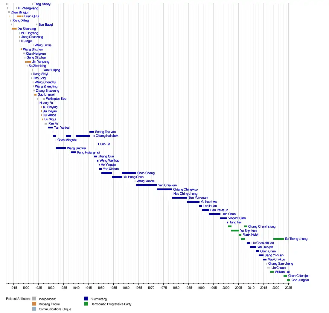 - ^ "Premiers of the Republic of China". Executive Yuan. Retrieved 3 July 2020.