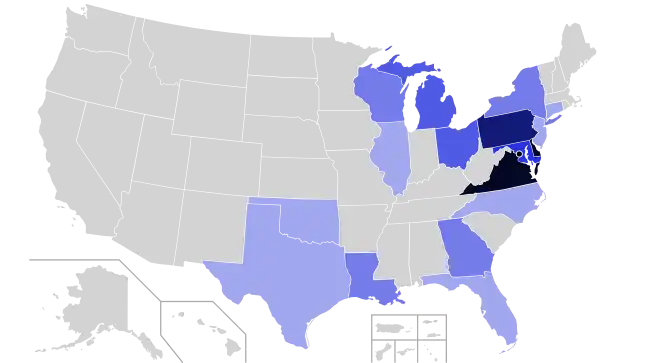 - Two: Connecticut, Georgia, Illinois, Louisiana, New Jersey, North Carolina and Wisconsin