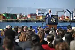143. ^ Barker, Jeff (October 29, 2024). "President Joe Biden pledges $147M for 'clean' Port of Baltimore equipment, makes city symbol of infrastructure aid". The Baltimore Sun. Retrieved October 29, 2024.
