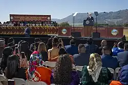 New York West Point May 25 Arriving via Stewart Air National Guard Base and flying to West Point Landing Zone on Marine One, President Biden delivered the Commencement Address at Michie Stadium on the campus of the United States Military Academy.[70]