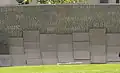 2003 | Janet Laurence | Tonkin Zulaikha Greer Architects | Stone screen | — | A curving granite wall inscribed with the names of 24,000 Australian towns and villages and of battles in both World Wars. Water runs down parts of the wall and slabs up against it bear the country’s coat of arms and military badges.[45] |