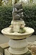 1961 | Silvia Gilley | — | Drinking fountain with sculpture | — | A small bronze figure of a terrier on a platform rising from the centre of a shallow circular pool.[10] |