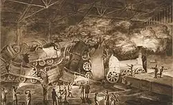29 August – United States – 1855 Camden & Amboy rail accident – A southbound Camden and Amboy Rail Road passenger train, backing up on a single track near Burlington, New Jersey, to make room for a northbound express, hit a horse-drawn carriage. The rearmost passenger car derailed, and the succeeding cars crashed into it, derailed, and plunged into a ditch. All four passenger cars were demolished. Twenty-four people died, and between 65 and 100 were injured.[76]
