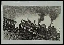 Lithograph of the La Chapelle train collision by Paul Van Rijssel 17 January – France – A runaway locomotive collides into a passenger train in La Chapelle. One of the passengers is Paul Gachet who survives the wreck with an injury to his liver.[159]