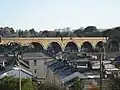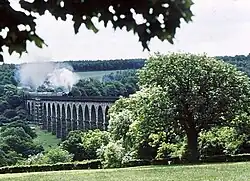 | Arthington Viaduct a.k.a. Wharfedale Viaduct | Arthington, West Yorkshire | 460 m (1,510 ft) | 1849 | Stone arch | II | 21 arches. Crosses the Wharfe valley. Carries the Leeds to Harrogate line. Also known as Castley Viaduct | ![]() |