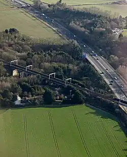 | Bletchley Flyover | Bletchley, Buckinghamshire | 605 m (1,985 ft) | 1959 | Reinforced concrete viaduct | Carried the former Varsity Line over the West Coast Main Line. As of August 2020, being restored for use in East West Rail. | ![]() | |