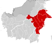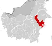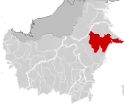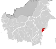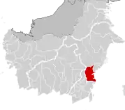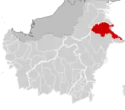 As of 2025, East Kalimantan consists of 7 regencies (kabupaten) and 3 cities (kota). These are listed below with their areas and their populations at the 2010 Census[1] and 2020 Census,[2] together with the official estimates as at mid 2024.[3] The totals below have been adjusted to take account of the removal of North Kalimantan. Cities in this table are marked by grey background, while regencies are left unmarked, both categories are accompanied with regional codes (kode wilayah).