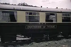 - ^ "No. 9116 Dutchess of York – GWR – Super Saloon". South Devon Railway. 29 July 2020. Retrieved 24 February 2023.