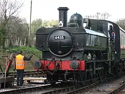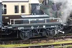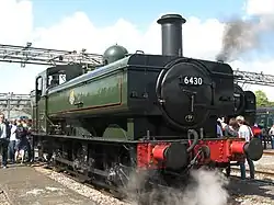 | 6430 | GWR 6400 | 0-6-0PT | 1937 | 2021 | 6430 was originally bought in 1966 by the Dart Valley Railway from Cashmore's Scrapyard, Newport as a source of spares for fellow 6400 class locomotives 6412 and 6435.[5] It was sold to a new owner in 1989 and restored at the Llangollen Railway, where it first steamed in 2003, and was based there for many years, including visits to other railways. In 2021, the locomotive left the Llangollen Railway for contract repairs at Buckfastleigh, formally becoming a member of the home fleet in December 2021.[6] |