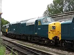 25262 | Class 25 | 1966 | 1999 | D7612 was delivered new to Glasgow Eastfield depot in April 1966 but moved south into England within a few months, eventually spending many years at Bescot TMD where it was renumbered 25262 in March 1974. In 1985 it went to Carlisle Kingmoor TMD and was renumbered again to 25901, which identified it as one of a pool of twelve locomotives allocated to a special pool for working chemical traffic. It was withdrawn in March 1987 and sold to Harry Needle Railroad Company who sold it in 1989 for preservation on the East Lancashire Railway. In 1999 it was sold again and moved to Buckfastleigh.[27] |