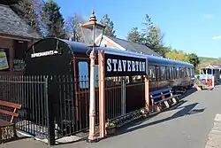 The engine sheds and workshops are at Buckfastleigh.[2] Wagons used for maintaining the line are mostly kept at Staverton railway station and some rolling stock is stored at Totnes Riverside.