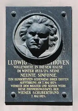 - ^ "Beethoven-Gedenkplatte – Fotografie einer 1900 enthüllten reliefierten Gedenkplatte von Joseph Kassin am Beethovenstein im Helenental in Baden" [The Beethoven stele in Hlohovec – photograph of an anonymous monument]. katalog.beethoven.de (in German). Beethoven House. Retrieved 18 February 2021.