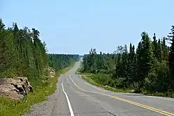 Secondary Highway 527, commonly referred to as Highway 527 is a provincial maintained secondary highway in the Canadian province of Ontario. It is one of the longest secondary highways in the province; only Highway 599 is longer. Highway 527 spans a distance of 235.1 km (146.1 mi) from a junction with Highway 11 and Highway 17, the Trans-Canada Highway, in the community of Shuniah just outside Thunder Bay, to the small, remote community of Armstrong and neighbouring Whitesand Indian Reserve.[1]