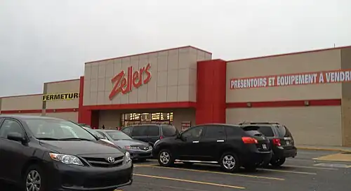 Its original anchors in 1957 were Steinberg's, Wise, Woolworth's and United Stores.[56][57] These companies are gone today but their anchor spaces have remained more or less the same and are currently occupied respectively by IGA, Rossy, Dollarama and Village des Valeurs.[57][58] Other current major tenants include Cinémas Guzzo and Pharmaprix.[59] Major tenants of the past include Hart, Bouclair and Consumers Distributing.[60]