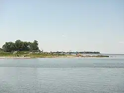 Patricia Beach nude section viewed from across the channel that separates Patricia from Beaconia beaches