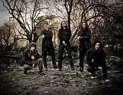 Korn is an American nu metal band from Bakersfield, California. Formed in 1993, the band originally featured vocalist Jonathan Davis, guitarists James "Munky" Shaffer and Brian "Head" Welch, bassist Reginald "Fieldy" Arvizu, and drummer David Silveria.[1] The current lineup of the group includes drummer Ray Luzier, who replaced Silveria in 2009.[1] The band released its self-titled debut album Korn in 1994, which was produced by Ross Robinson and featured equal songwriting credits for the whole band.[2][3] Life Is Peachy, released in 1996, included two cover versions – of Ice Cube's "Wicked" and War's "Lowrider",[4] while the band's third album Follow the Leader featured collaborations with Limp Bizkit's Fred Durst ("All in the Family") and rappers Ice Cube ("Children of the Korn") and Slimkid3 ("Cameltosis").[5]