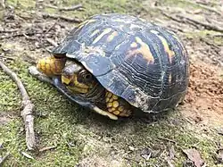 | Eastern box turtle[43][1] | Terrepene carolina | Several specimens including carapaces and postcranial remains.[43] | Fossils had been referred to T. eurypygia by Hay (1908), but were reassigned to T. carolina by Parris & Daeschler (1995).[43] Many remains are assigned to cf. Terrapene sp., but likely belong to the same species.[43] | ![]() |