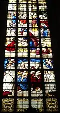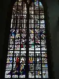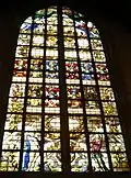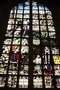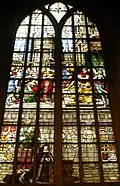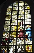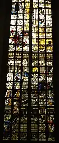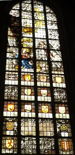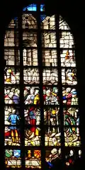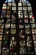 The stained-glass windows in the Sint Janskerk can be viewed by visitors after paying a modest entrance fee. The earliest windows date from 1555, three years after a destructive fire laid waste to the earlier church built in the same place. The creation of stained-glass windows was temporarily halted in 1572 following Gouda's decision to side with the Protestant faction in the Eighty Years' War, but the process was resumed a few years later with windows of a different and more worldly character. As a result, the church features stained-glass windows from both Roman Catholic and Protestant donors – a highly unusual combination. The most treasured is the series of windows around the Choir that portray the life of John the Baptist, the city's patron saint, in parallel with that of Jesus Christ.