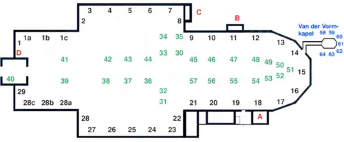 Map of the stained-glass windows by number in the Janskerk in Gouda