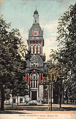 Beaver | Beaver | 1875 | Thomas Boyd | Second Empire | Courthouse is illustrated in a 1910 postcard. It was rebuilt in 1933 after a fire in a then-contemporary Streamline Moderne style. | |