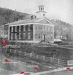 1860 | Cleaveland and Bachus | Second Empire | NRHP-listed (refnum 79002210). It is a 2+1⁄2-story brick structure constructed in 1860. An addition was completed in 1884. It features a square brick clock tower with a bell shaped roof. | [34][35] | |