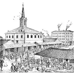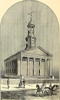 1805 | Ezra Ale | Greek Revival | NRHP-listed (refnum 76001618). The original section was built in 1805. It is a rectangular brick building on a stone foundation, measuring 135 feet long by 60 feet wide. The building is faced in stucco and has a gable roof topped by a cupola. It features an entry porch with eight 26 foot high smooth faced columns with Ionic order capitals. The porch was added in 1835. | [28][29] |