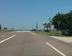 Previously, the roadway extended beyond the current western terminus and functioned as a ramp to westbound US 82; this ramp was eventually obliterated, as originally proposed by TxDOT to AASHTO, though its footprint is still visible past the barricades and fencing.[46]