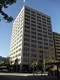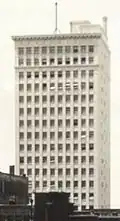 Fort Worth's history of skyscrapers began with the completion of the 7-story Flatiron Building in 1907. When built, it was the tallest building in North Texas.[3] The Flatiron Building stood as Fort Worth's tallest structure until 1910, with the construction of the 10-story Baker Building (since renamed the Bob R. Simpson Building).[4] Fort Worth went through a major growth in skyscrapers during the 1920s and 1930s, with the Farmers and Mechanics National Bank building (since renamed 714 Main) emerging as the tallest in the city.[1] The Farmers and Mechanics building remained the tallest in the city until 1957, when the 30-story Landmark Tower was completed.[5] From the early 1970s to the mid-1980s, Fort Worth went through the largest construction boom in the city's history.[6] In 1983, the 40-floor Burnett Plaza was constructed, surpassing the Landmark Tower. The Burnett Plaza has remained the tallest structure in the city to date.[7]