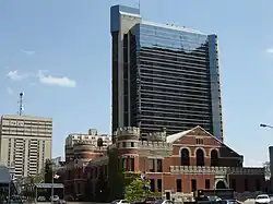 London is the largest city in Southwestern Ontario. In London, there are 16 buildings that stand taller than 70 metres (230 ft). The tallest building in the city is the 40-storey, 135.3 m (444 ft) Centro,[1] which was completed in 2024. The second-tallest is the 24-storey, 113.4 m (372 ft) One London Place, which was the tallest building in the city from 1992 to 2024. Originally there were plans to construct a twin tower called Two London Place; however, due to the recession of the early 1990s, this structure was never built.