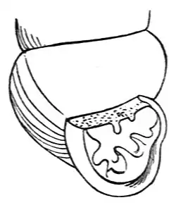 Illustration of the opening of the shell of a Vertigo ovata land snail, or ovate vertigo