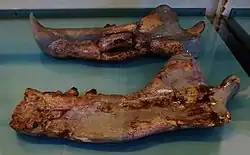 †VulpavusMounted fossilized skeleton of the Eocene mammal Vulpavus - †Vulpavus australis