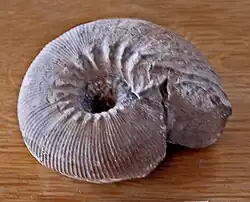 †CalycocerasFossilized shell of the Late Cretaceous ammonoid cephalopod Calycoceras - †Calycoceras naviculare – type locality for species