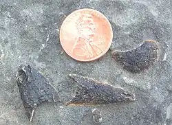Fossilized teeth (W) of the Cambrian–Early Ordovician conodont Acanthodus - †Acanthodus uncinatus