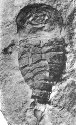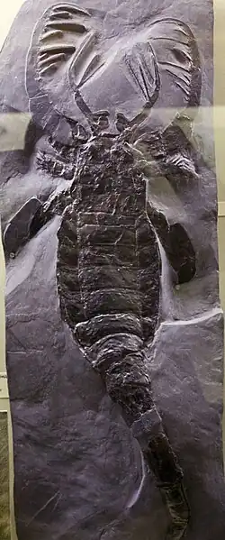 Fossil of the Silurian-Early Devonian eurypterid ("sea scorpion") Acutiramus - †Acutiramus floweri – type locality for species