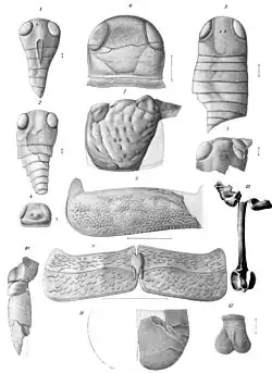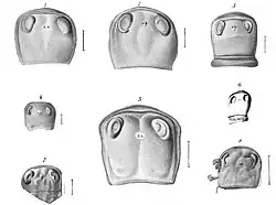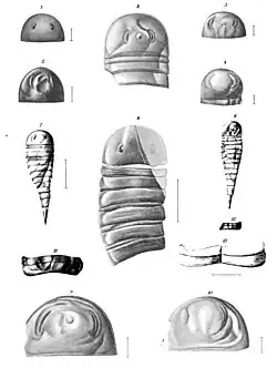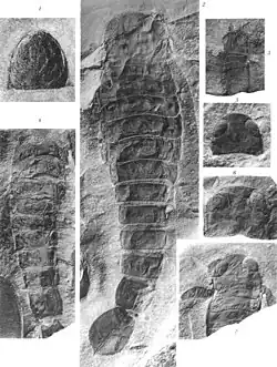 Illustration of fossils of the Cambrian trilobite Acidiscus - †Acimetopus